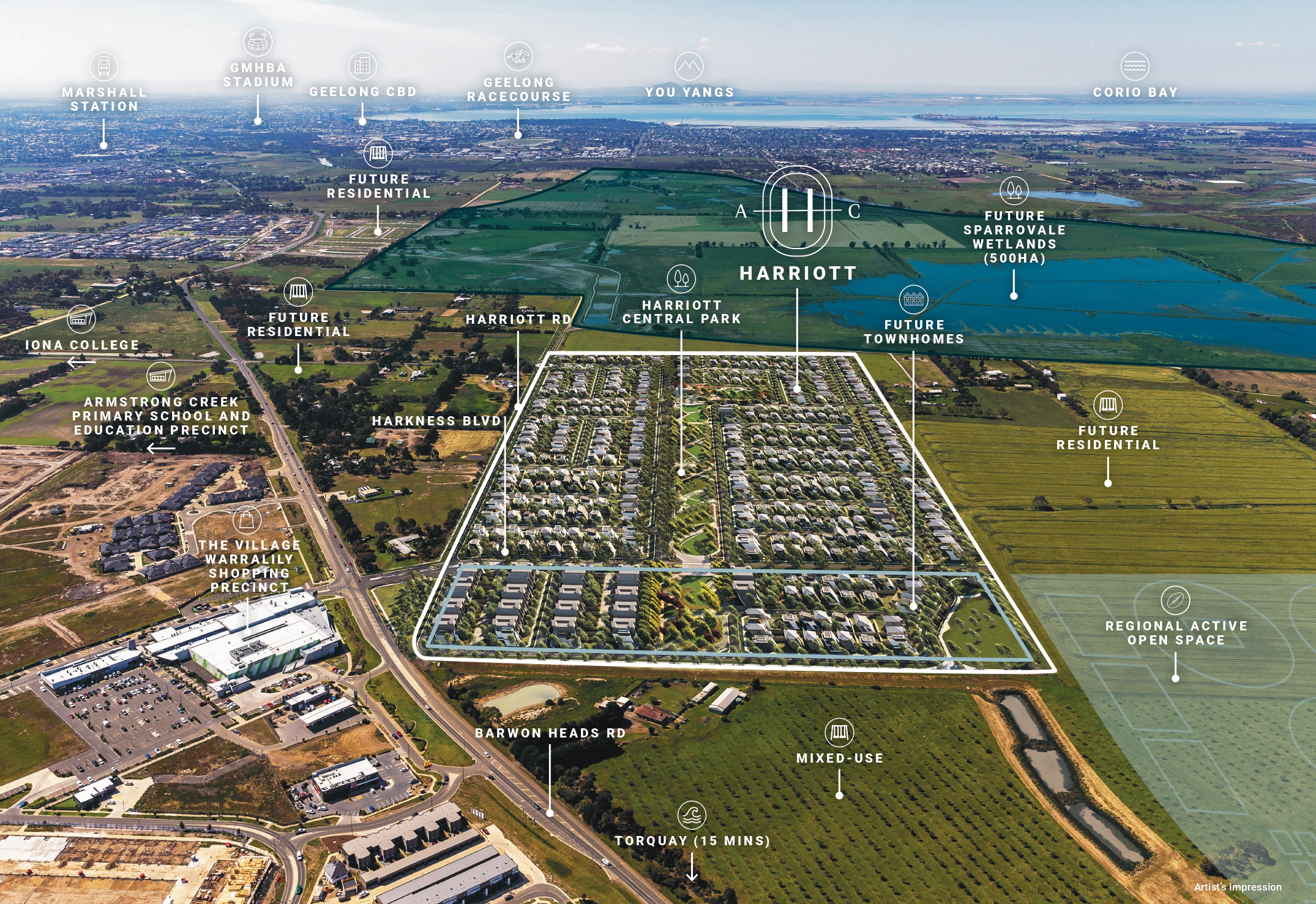 A short drive away from Geelong - now a growing, bustling city thriving in innovation and business - life at Harriott is perfectly placed between city and coast. Transport links connect Armstrong Creek to Melbourne in the form of Barwon Heads Road and nearby Marshall Railway Station with railway upgrades on the horizon.
